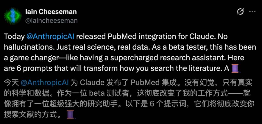 这一次,「Claude生命科学版」还与外部科研平台和工具打通,诸如PubMed、Benchling、Synapse.org。