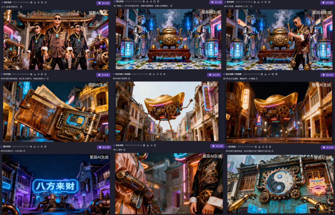 来,请欣赏用AI给神曲《八方来财》做的东方赛博朋克MV: