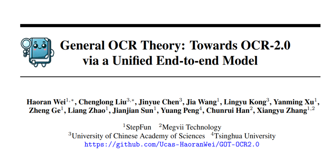 Haoran Wei,曾就职于阶跃星辰,当时还主导开发了意在实现“第二代OCR”的GOT-OCR2.0系统。