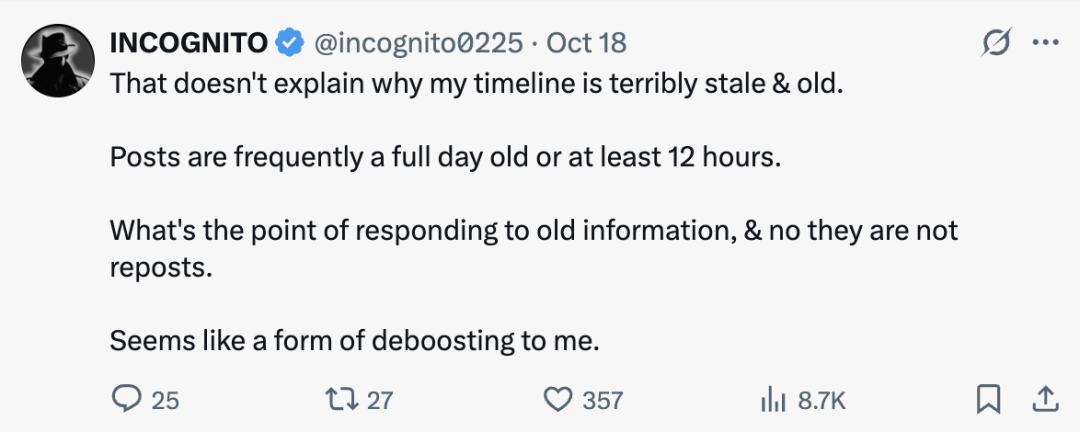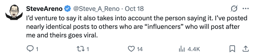 他表示,X的推荐算法并不是随意地推流或限流,而是像人类一样,根据帖子的内容判断它是否会吸引别人: