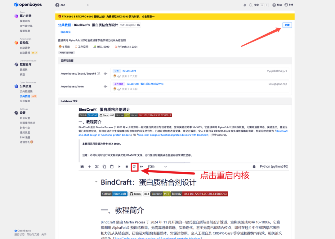 目前,「BindCraft:蛋白质粘合剂设计」已上线至 HyperAI超神经官网的「教程」板块,点击下方链接即可体验一键部署教程 ⬇️