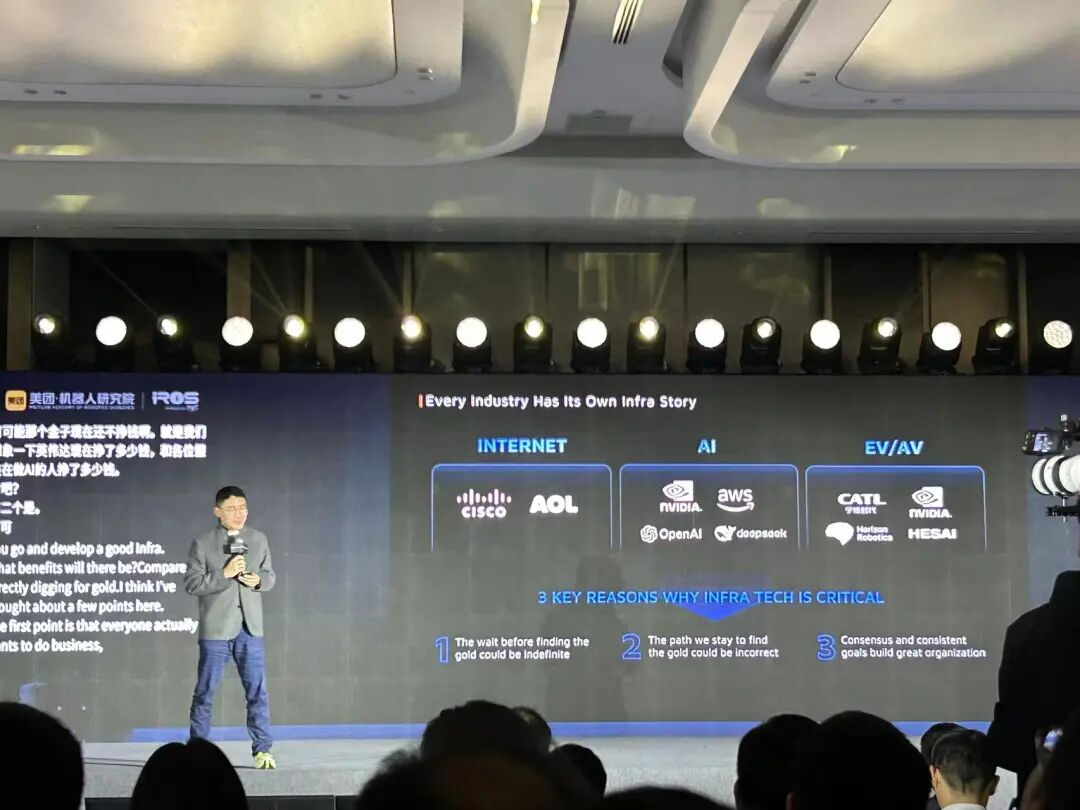 毛一年展示了美团无人机高空送汉堡、机场闪送“小黄蜂”等最新进展。 李一帆重磅发声:机器人是中国近20年最好的机会! 王潜则直接抛出:具身智能不是把DeepSeek塞进宇树机器人里——具身智能不是 AI 应用,而是基础模型。