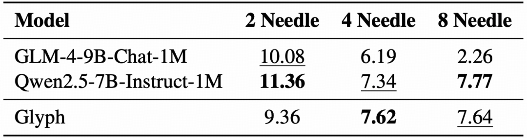 研究团队在多个长上下文基准上系统评估了 Glyph 的效果。如下: