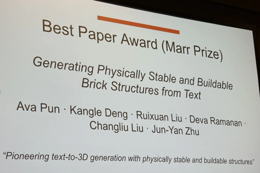 Generating Physically Stable and Buildable Brick Structures from Text(从文本生成物理稳定且可搭建的积木结构)。
