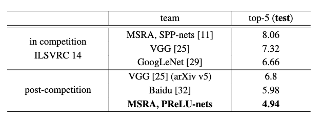 基于PReLU网络(PReLU-nets),团队在ImageNet 2012分类数据集上实现了4.94%的Top-5测试误差,相比ILSVRC 2014冠军GoogLeNet(6.66%)提升了26%。据研究人员所知,这是首次在该视觉识别挑战中超过人类水平(5.1%)的结果。