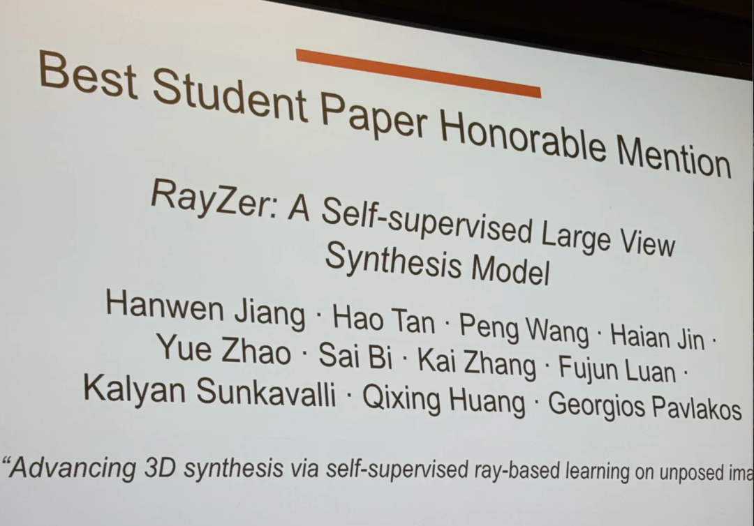 RayZer: A Self-supervised Large View Synthesis Model(基于自监督学习的大规模视图合成模型)。