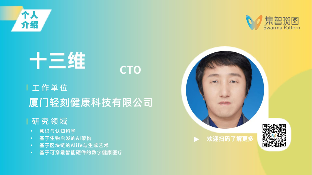 十三维,厦门轻刻健康科技有限公司CTO、数智健康研究院院长,AI和元宇宙研究者,科学作家。在IEEE等学术期刊,集智俱乐部、返朴、追问、文艺报、长江文艺等多家科普媒体发表论文和文章。