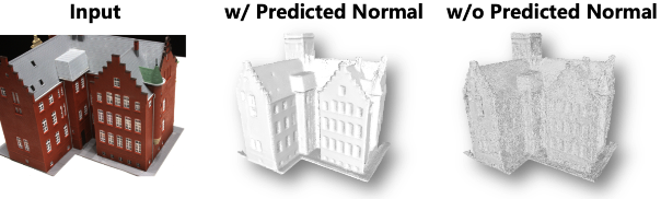 具体实现是通过端到端多任务协同训练,各任务相互强化,例如,预测的法线图在Poisson表面重建中能产生更清晰的网格细节,而深度和相机约束则互相校准,提升整体几何一致性。