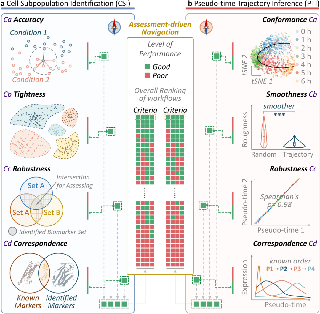 此项工作的研究人员以机器学习为支撑,分别面向CSI与PTI构建了两套成体系、多角度的评估框架。每一框架均由四项相互独立且互补的指标组成,从准确性、稳健性、一致性与先验对应性等维度对候选流程进行整体评价,并以综合评分实现全局排序与自动优选。该评估系统在保证下游结果准确性的同时,显著强化了跨数据集的可重复性与结论稳健性,从方法学层面,为药理学、精准医疗等相关研究提供了确定性与规范化的保障。