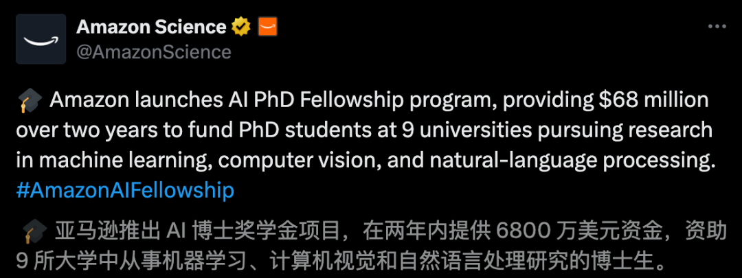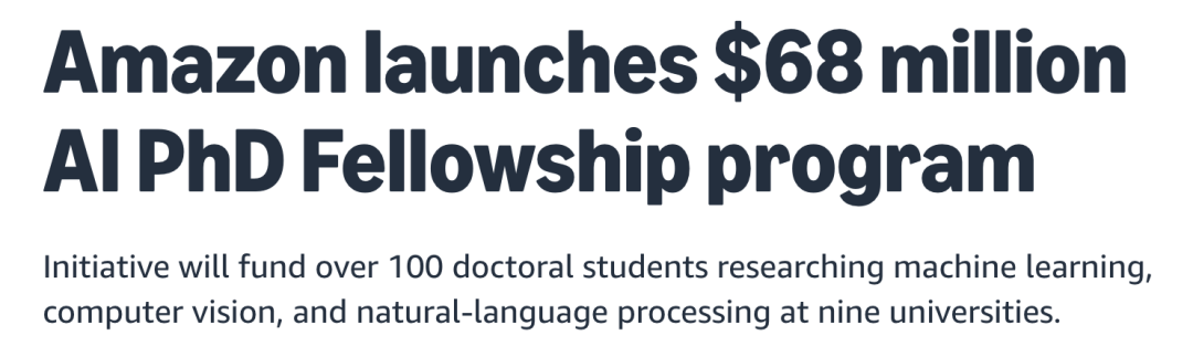 可以说,这是亚马逊首次发布的巨额AI博士奖学金计划,总金额6800万美元