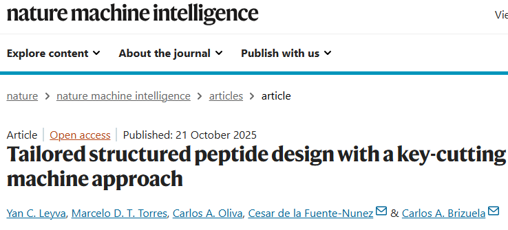 Leyva, Y.C., Torres, M.D.T., Oliva, C.A. et al. Tailored structured peptide design with a key-cutting machine approach. Nat Mach Intell (2025).