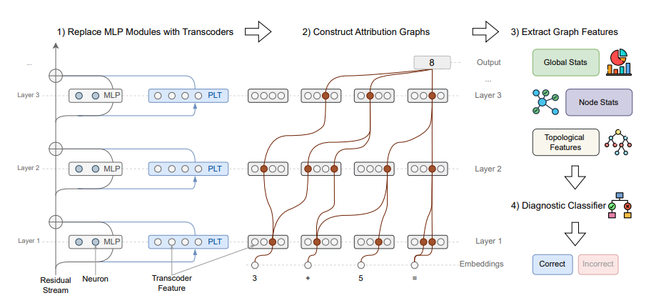 这意味着它不仅能看见推理电路的结构,更能精准判断模型是否会想错。