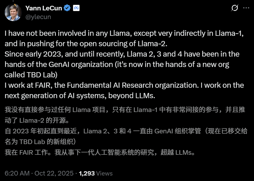毕竟,作为Meta最近这一系列「闹剧」导火索的Llama 4,和他也没啥关系。