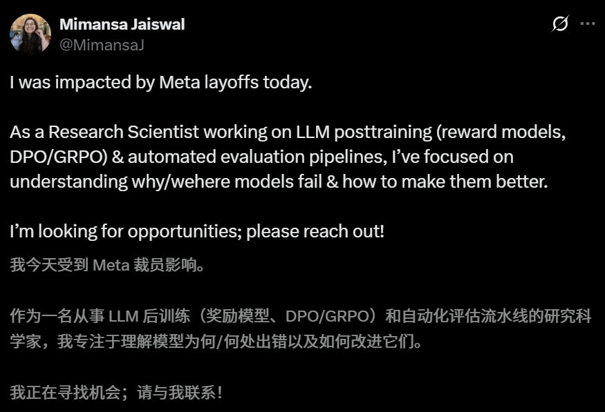 其他被裁的研究员,也纷纷开启了「推特求职」模式。