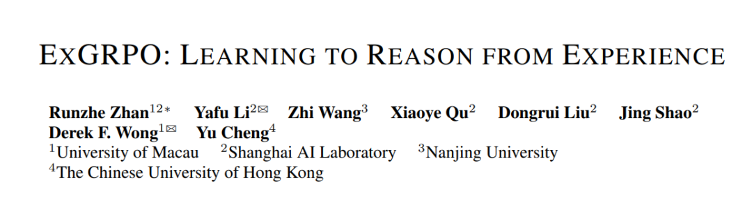 来自上海人工智能实验室、澳门大学、南京大学和香港中文大学的研究团队,最近提出了一套经验管理和学习框架ExGRPO——