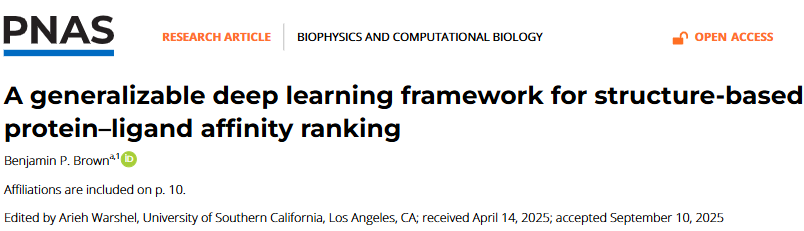 B.P. Brown, A generalizable deep learning framework for structure-based protein–ligand affinity ranking, Proc. Natl. Acad. Sci. U.S.A. 122 (42) e2508998122,