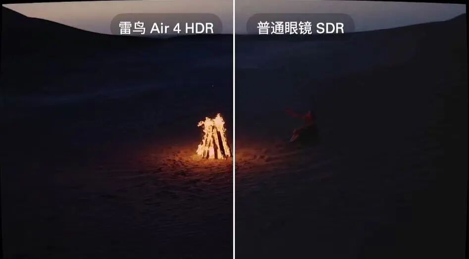 上面这张图是雷鸟Air 4和普通眼镜HDR的画面对比。