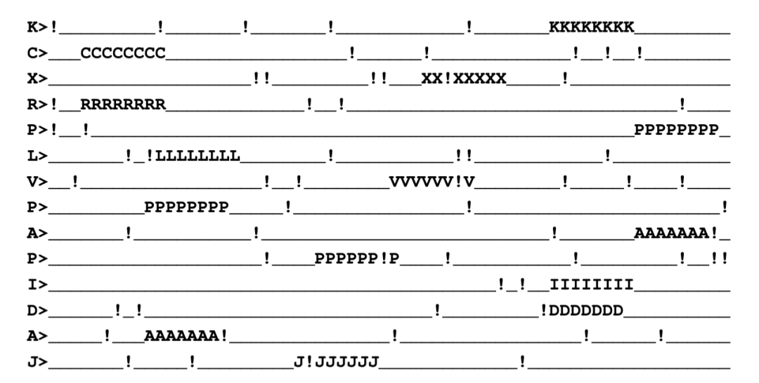主体是一行固定长度的下划线 _,在随机位置嵌入 8 个相同的大写字母组成的「target」(如KKKKKKKK)。