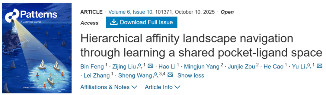 Feng, Bin, Zijing Liu, Hao Li, Mingjun Yang, Junjie Zou, He Cao, Yu Li, Lei Zhang, and Sheng Wang. "Hierarchical affinity landscape navigation through learning a shared pocket-ligand space." Patterns 6, no. 10 (2025).