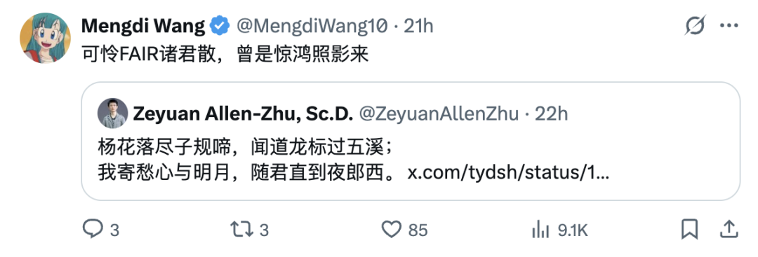 田渊栋推文下面,中国同胞用了更加中国的方式,把意境拉满了。