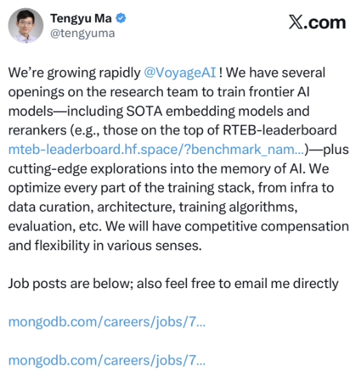 很多著名冲浪网友,比如英伟达Jim Fan老师、清华姚班校友&斯隆奖得主马腾宇都纷纷在自己的𝕏上拉起了招聘横幅。