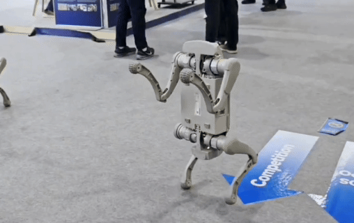 再来看看这个,智身科技这次展出的钢镚L1机器狗狗:
