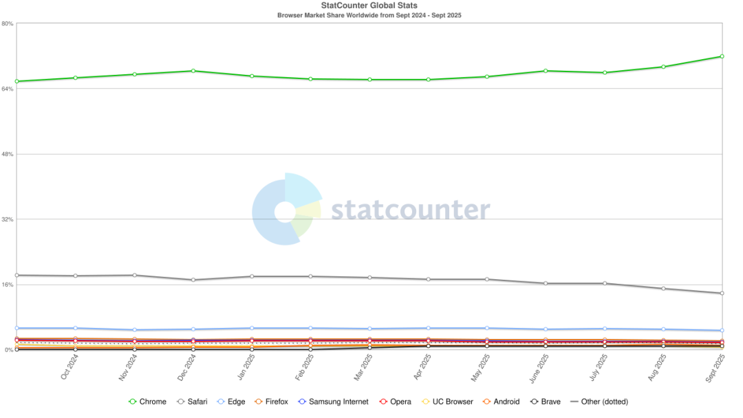 如今,超过80%的全球主流浏览器都以Chromium为基础,包括Chrome、Edge、Brave、Opera、Arc,以及如今的Atlas与Comet。