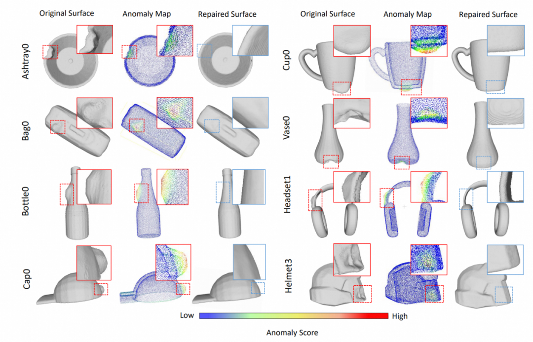 更关键的是,真实应用(如3D打印与先进制造)不仅需要「发现缺陷」,还要「在位修复」,这要求方法能输出连续、高保真的正常几何模板。
