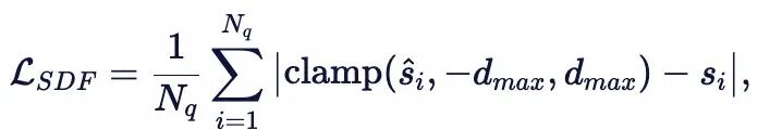,将三维坐标x映射为点到物体表面的有符号距离,结合正弦位置编码函数γ(x),预测距离值: