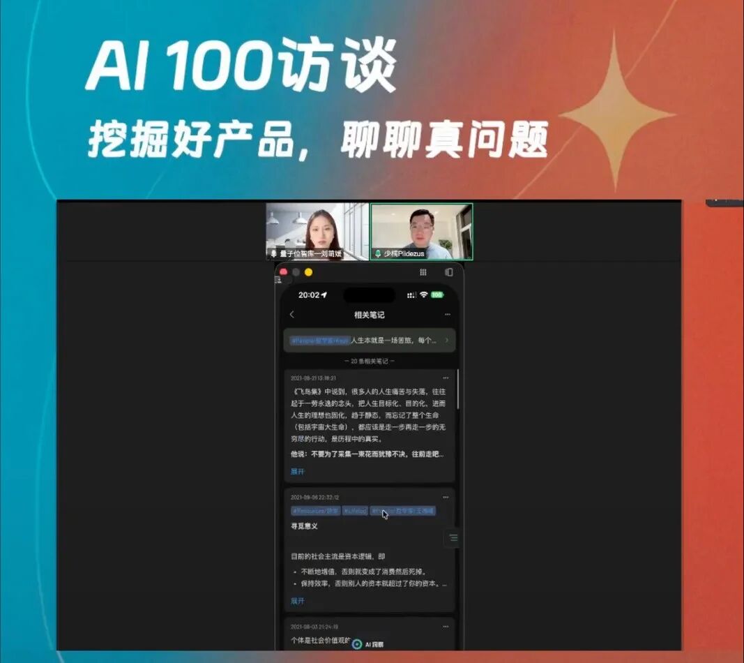 无论是AI笔记类产品的爱好者,或者对碎片化知识管理有需求的用户,亦或是小众赛道的AI创业公司,期待大家都能够从本次访谈中找到一些属于自己的参考。