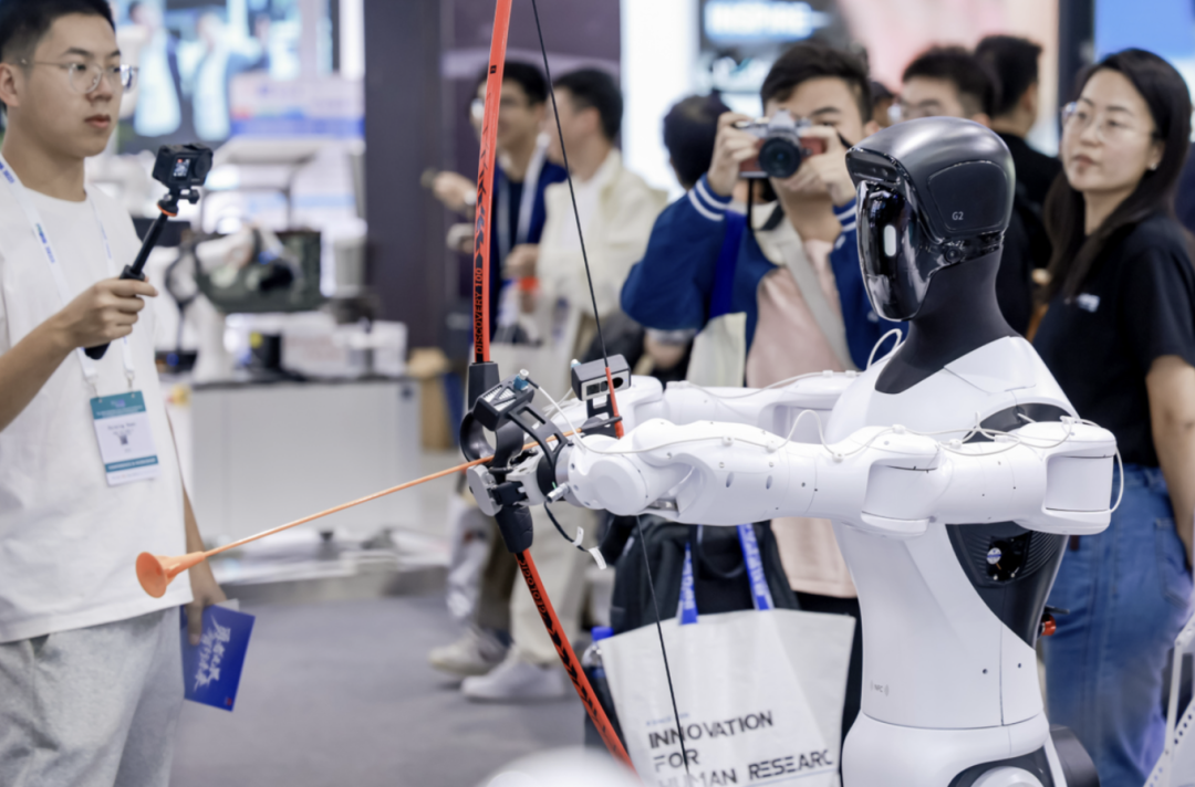 观众们还可在智元展台体验一把机器人射箭,现场感受精灵G2遥操作的超低延时和超高精度。