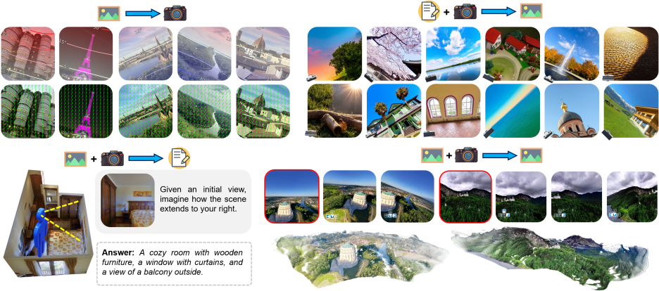 此外,通过指令微调(Instruction Tuning),团队的模型可以灵活扩展至多种跨视角任务,如空间想象、世界探索和摄影指导等。