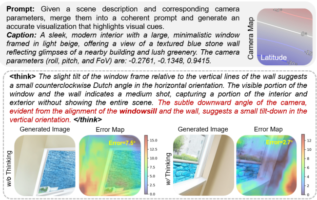 △在可控图像生成任务中引入与理解任务共享的思维链机制,同样可以进行 “与相机共思“(thinking with camera)