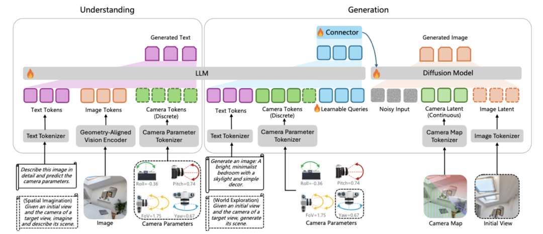 为此,团队首次尝试在统一框架下融合以相机为中心(camera-centric)的理解与生成任务,将统一多模态大模型这一范式拓展至专注相机几何的空间智能领域。