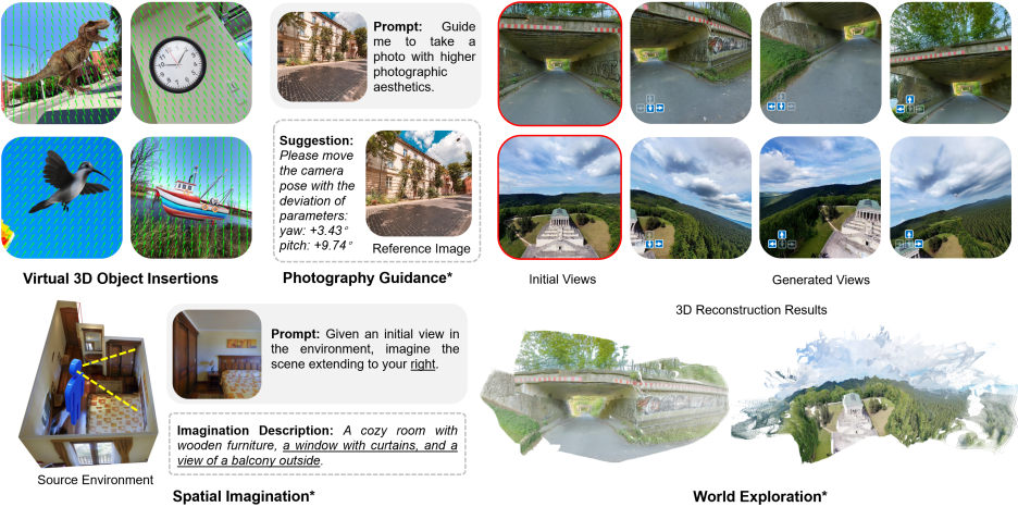 其中在世界探索任务中,团队对初始视角与生成视角进行了三维重建并可视化(利用VGGT),结果显示生成结果在空间结构上保持了良好的一致性。更多拓展应用结果请参考论文的附录部分。