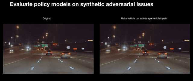 从相同的初始视频出发,让模拟中的汽车以对抗性方式形式