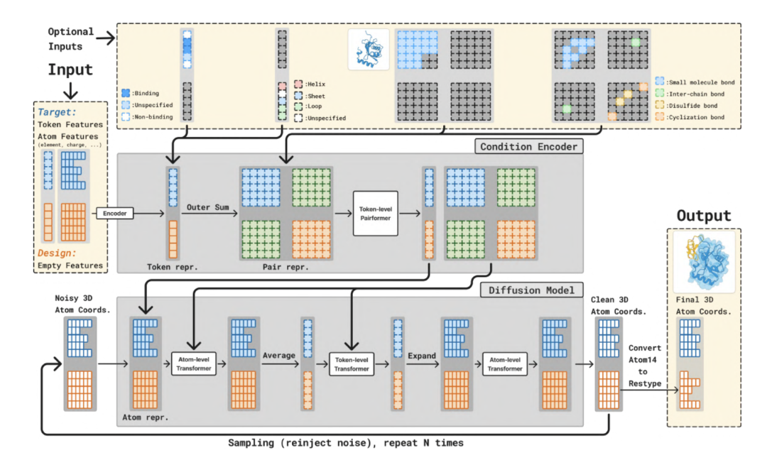 该模型保留了 AlphaFold3 和 Boltz-2 架构的主要组件,并在此基础上进行了部分改进,以引入更多的条件输入。