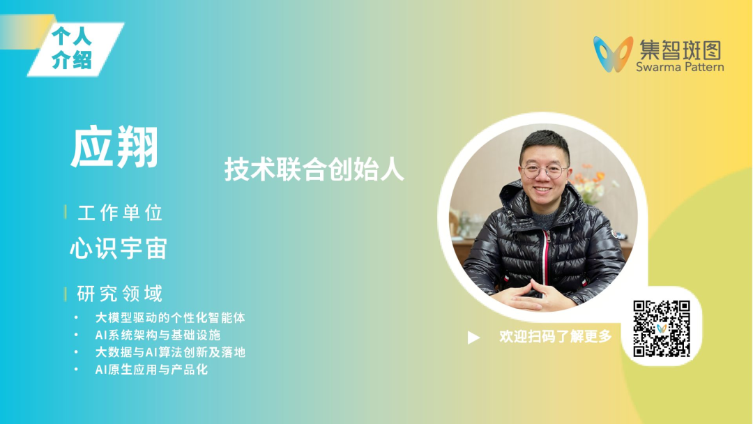 应翔,清华大学软件工程硕士,曾在华为 IT 产品线算法部门担任高级工程师,创立并领导了大数据与 AI 团队,专注于算法创新及应用落地。2020年加入阿里云与达摩院,担任算法专家,负责 NS Lab 的 AI 系统架构设计。自2022年起,担任Mindverse(心识宇宙)的联合创始人兼技术负责人。带领团队研发了世界首个产品化 AI Agent 平台——MindOS Studio,并推出 AI 原生应用 Me.bot,是Second Me项目负责人。