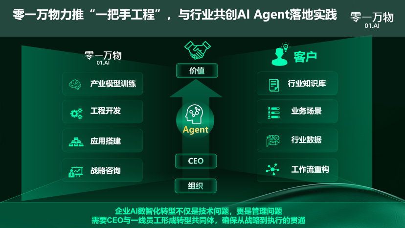 AI的价值正在从工具走向服务,最终指向结果。零一万物要做的,是让AI成为企业转型的推动者。