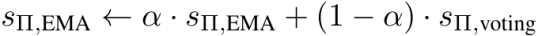 考虑到种群的动态变化,团队采用指数平滑后的得分 作为进化的适应度评分,更新公式为: