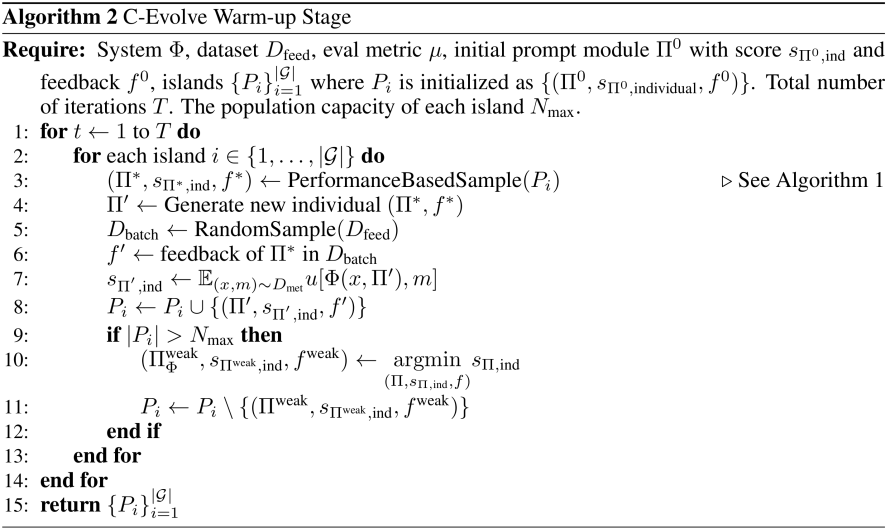为了获得一组性能最佳的提示词 ,团队采用了基于海岛的进化算法:在