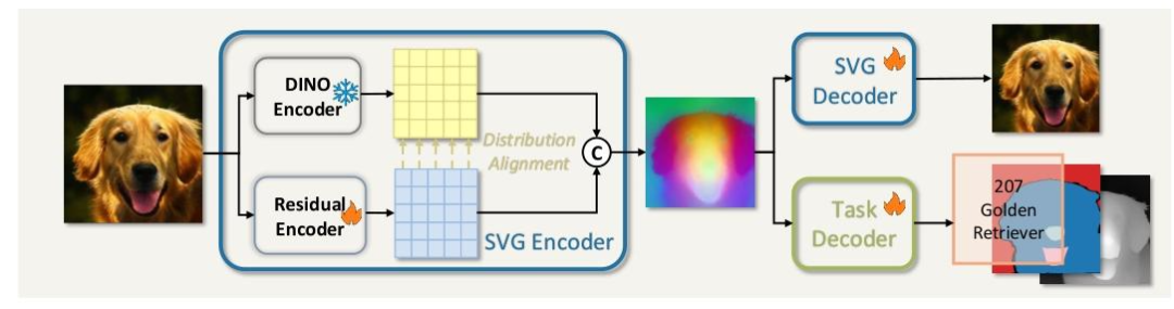 而清华&快手可灵团队的SVG技术,则走了兼顾生成与多任务通用的路线,核心差异就在于对特征空间的构建逻辑上。