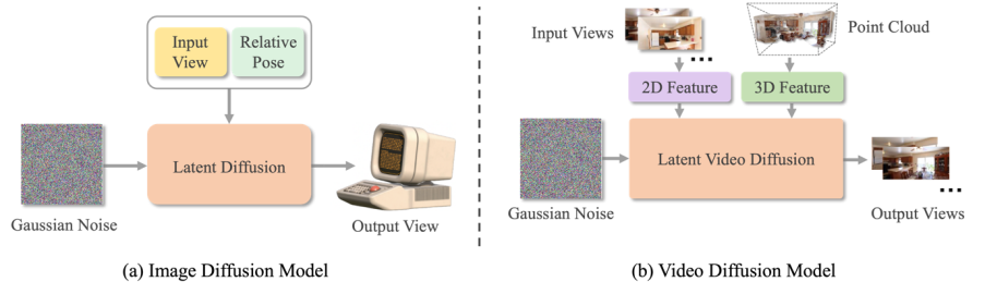 Generative Diffusion-based:以 Zero-1-to-3、SyncDreamer、MVDream、CAT3D、CAT4D 为代表,将图像或视频扩散模型迁移到三维生成领域。这些模型让“一张图生成整个场景”成为可能。