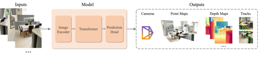 在 3D 视觉领域,如何从二维图像快速、精准地恢复三维世界,一直是计算机视觉与计算机图形学最核心的问题之一。从早期的Structure-from-Motion (SfM) 到Neural Radiance Fields (NeRF),再到3D Gaussian Splatting (3DGS),技术的演进让我们离实时、通用的 3D 理解越来越近。
