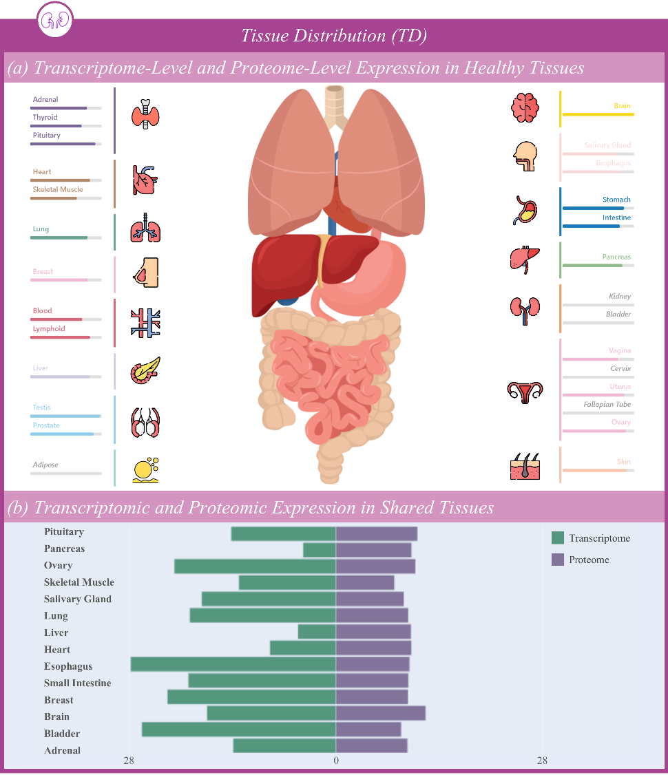 药物转运体在不同组织和器官中的表达与定位差异,是影响药物组织分布及器官特异性毒性的主要因素之一。VARIDT 4.0在此层面系统整合了404种药物转运体在52种人体组织中的25,797条表达谱记录,涵盖了转录组和蛋白质组两个维度。这一宏观层面的分布图谱,为定量预测药物的组织特异性药效与风险、优化给药策略、以及构建生理药代动力学(PBPK)模型提供了关键的数据支持。
