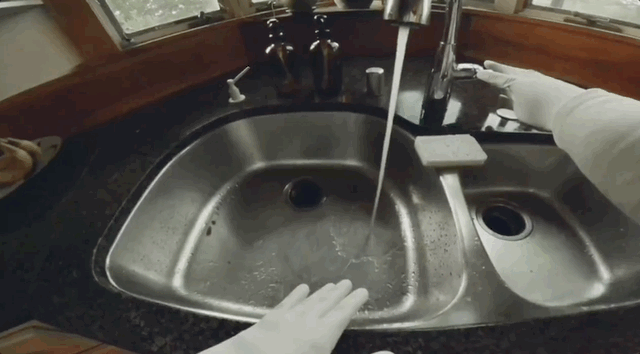 一个是,如果打扫卫生时把自己弄脏了,NEO会走到洗手池前,打开水龙头给自己“局部搓澡”: