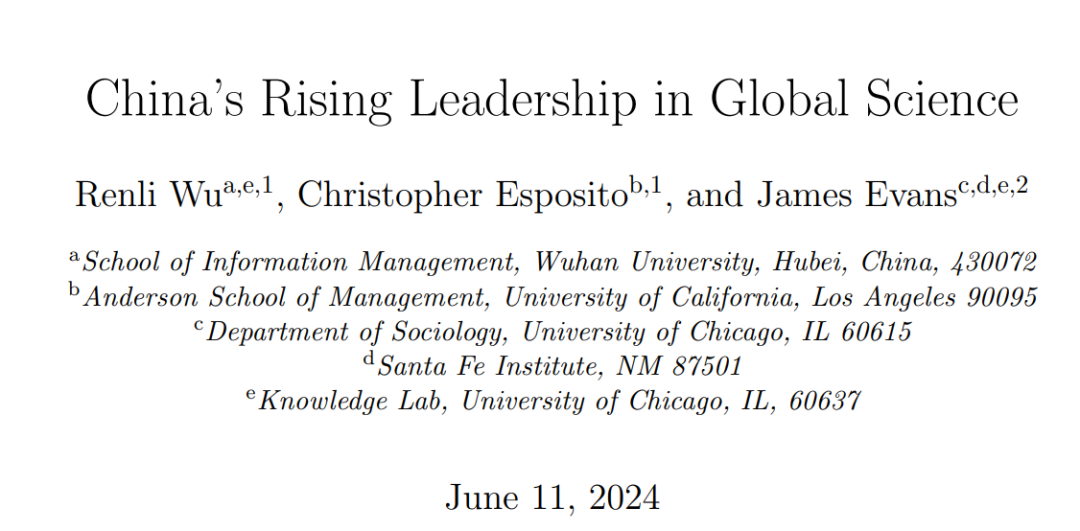 Renli Wu,论文提及的所属单位为武汉大学信息管理学院&芝加哥大学Knowledge Lab。