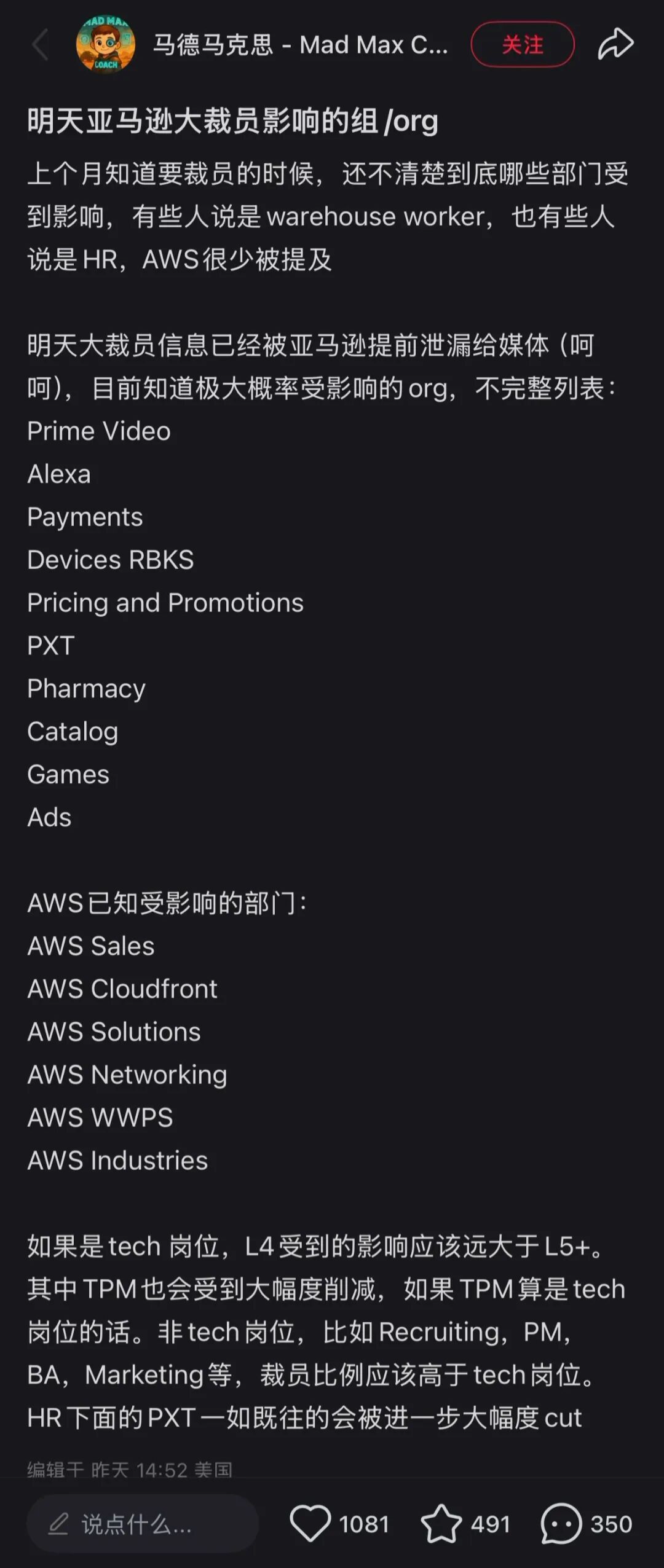 如果说AI对中层员工构成了无形压力,那么亚马逊此次裁员更直接、也颇具戏剧性的一幕是:连中高层管理者也未能幸免于「刀俎」。