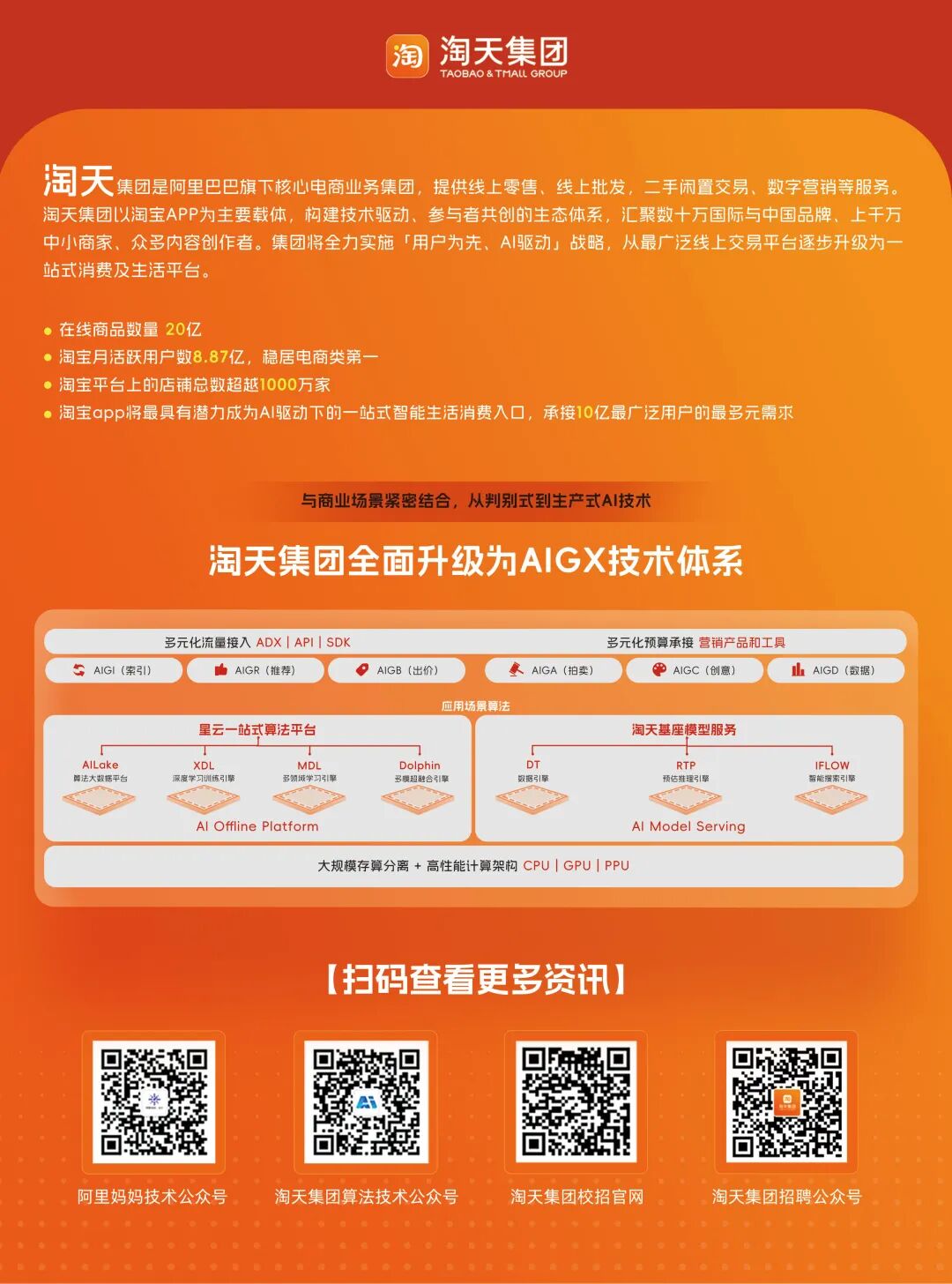 今年,淘天集团将深度参与本次盛会,不仅有多篇高质量论文被接收,涵盖大语言模型、模型幻觉、复杂指令遵循等热门方向,还有专属展台,带来最新技术成果展示、产品互动体验,以及与核心研发团队面对面交流的机会,更有机会在现场直通面试,与我们共创未来!
