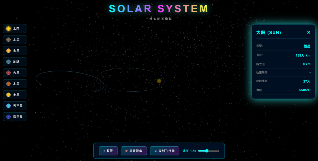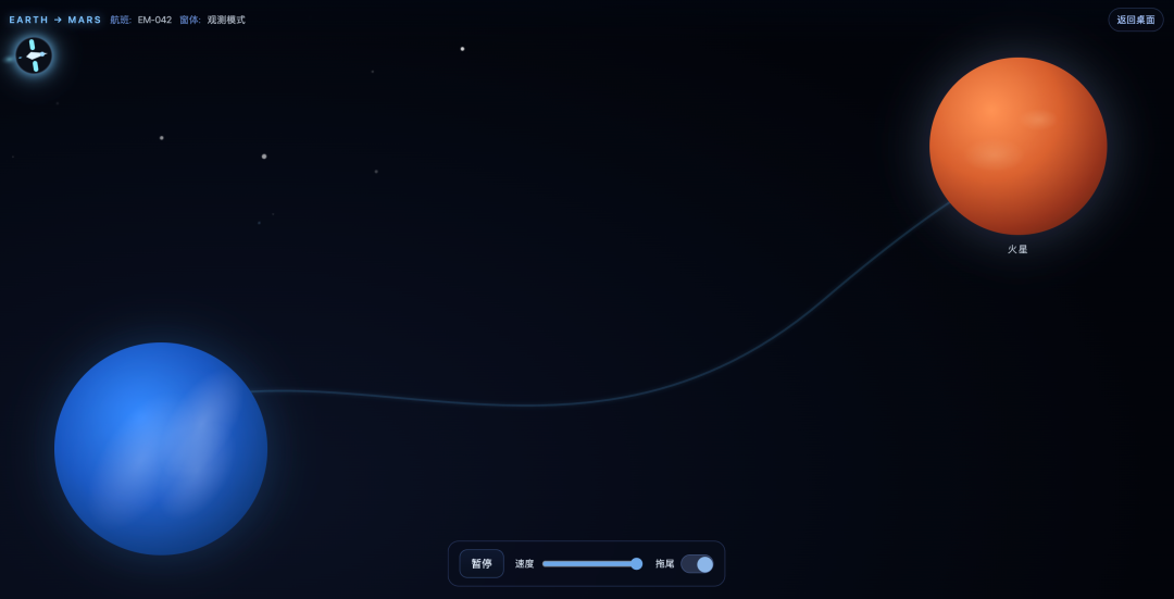 让它模拟一个飞行器从地球飞往火星就不是那么优雅了。